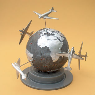 Inspiration for my work stems from two childhood memories : my father arriving home carrying a battered leather suitcase filled to the brim with model planes and ships; Images of travel to far-flung places, namely my birthplace of Australia, where my parents emigrated on the £10 boat passage during the 1960's.